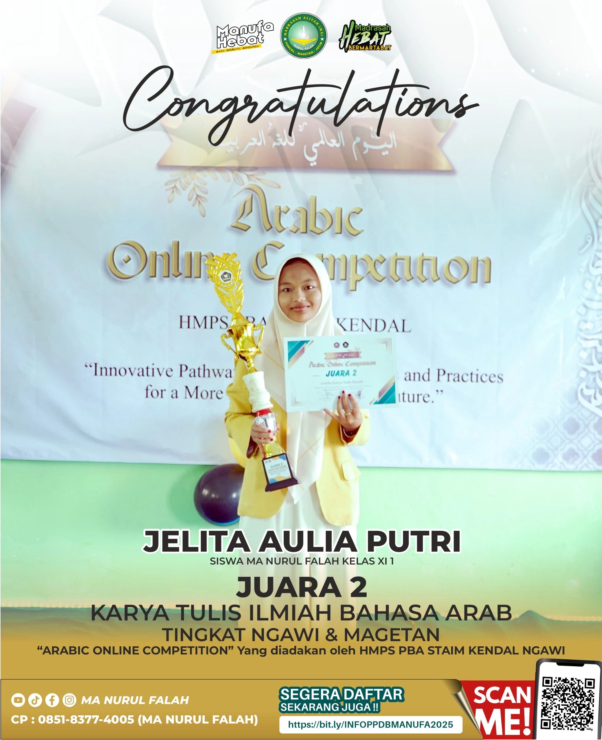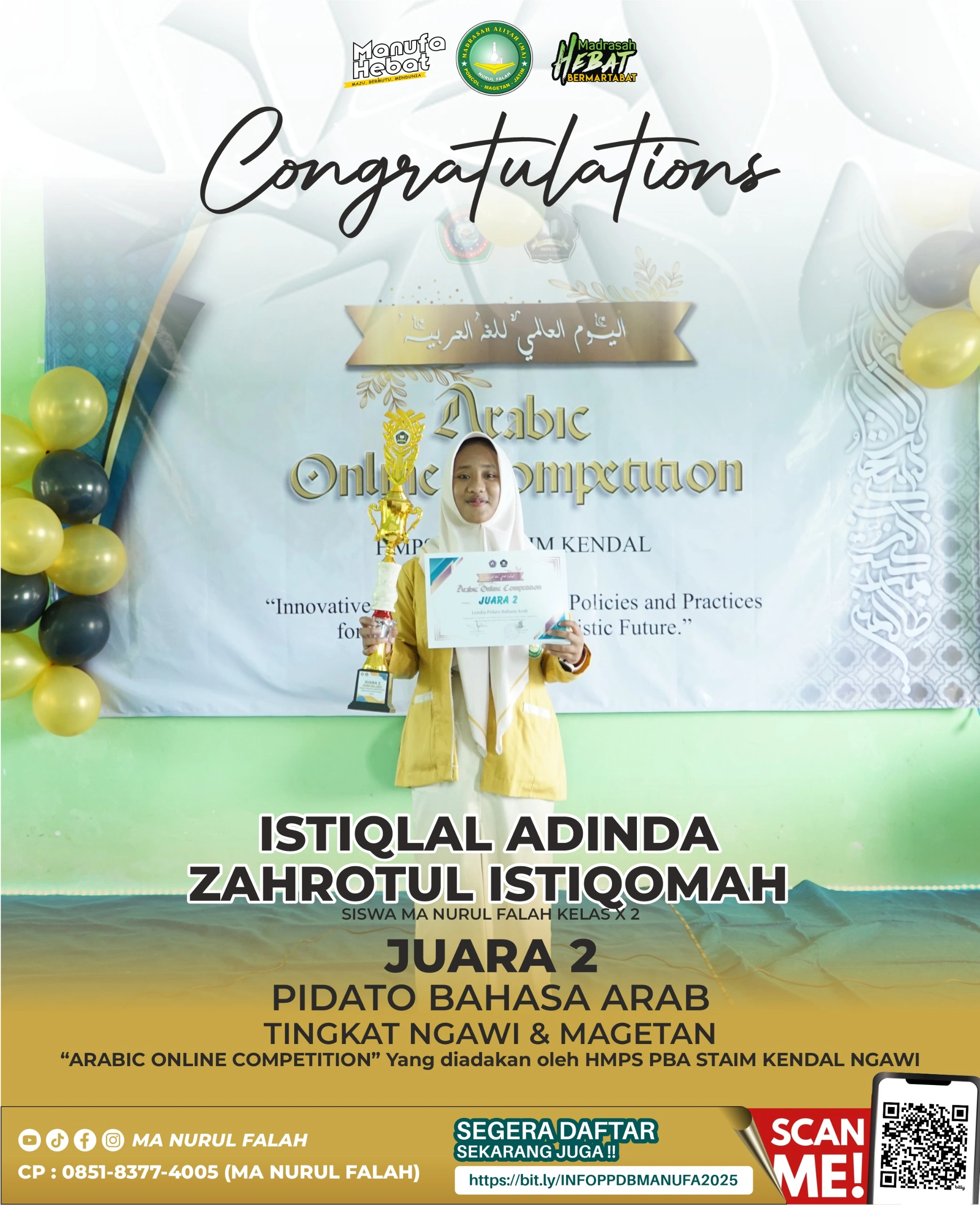 JUARA 2 PIDATO BAHASA ARAB TINGKAT NGAWI & MAGETAN "ARABIC ONLINE COMPETITION" Yang diadakan oleh HMPS PBA STAIM KENDAL NGAWI